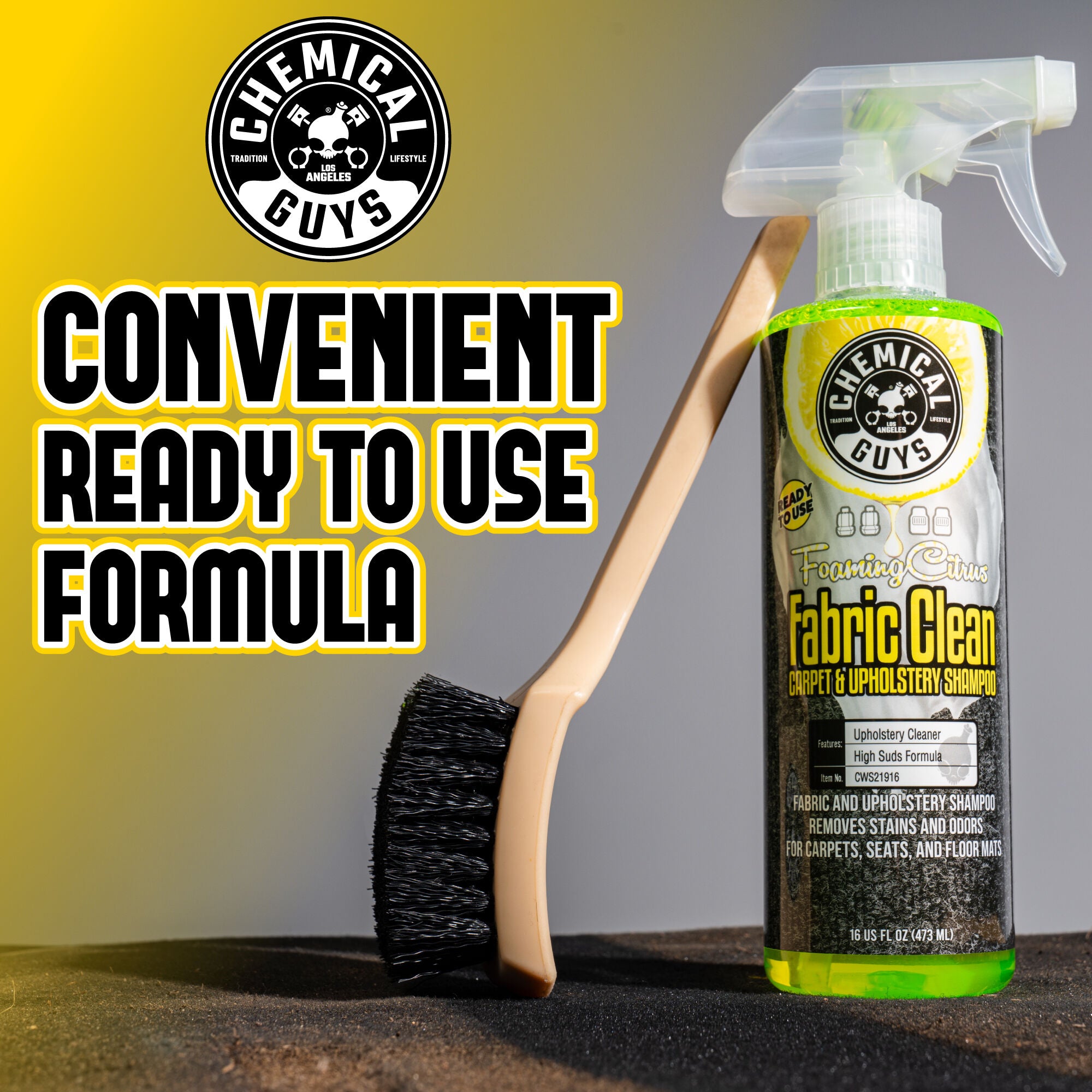 Say goodbye to stubborn stains and odors with the delightful Foaming Citrus Fabric Clean! Its amazing foaming action effortlessly lifts dirt for a quick and easy cleanup while leaving behind a refreshing citrus scent that brightens your space. For the best results. apply the foam using a brush to agitate and lift dirt from your fabrics. It’s the perfect solution for giving your carpets and upholstery a happy refresh. whether in your car. home. or office!