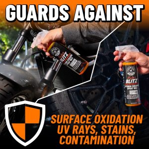 HydroBlitz is a hybrid ceramic spray wax that offers the quick application and shine of traditional wax. combined with the enhanced protection and impressive water beading of ceramic coatings.?It’s designed?for those who want a fast and effective way to get a glossy finish while ensuring long-lasting durability for their vehicle’s surfaces.