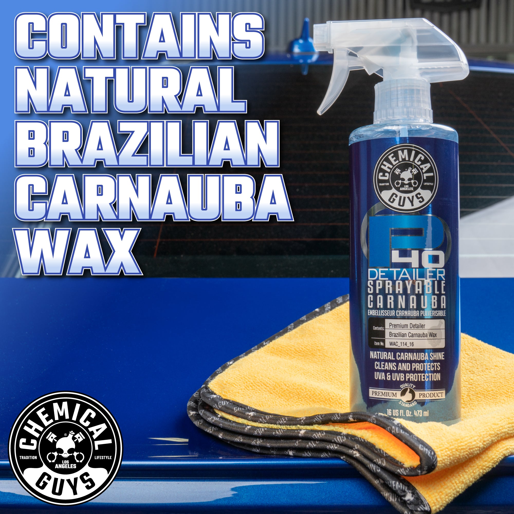 P40 is the innovative quick detail spray that’s blended with slick lubricants. streak-free cleaners. and natural carnauba wax for quick wipe downs and superior gloss with durable protection.?