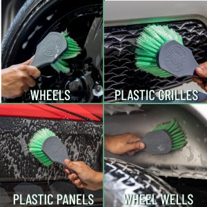 The Wheelie features super-soft synthetic flagged-tip bristles for a gentle. effective clean. It effortlessly removes dirt and grime from wheels. rims. wheel wells. and other dirty exterior surfaces.